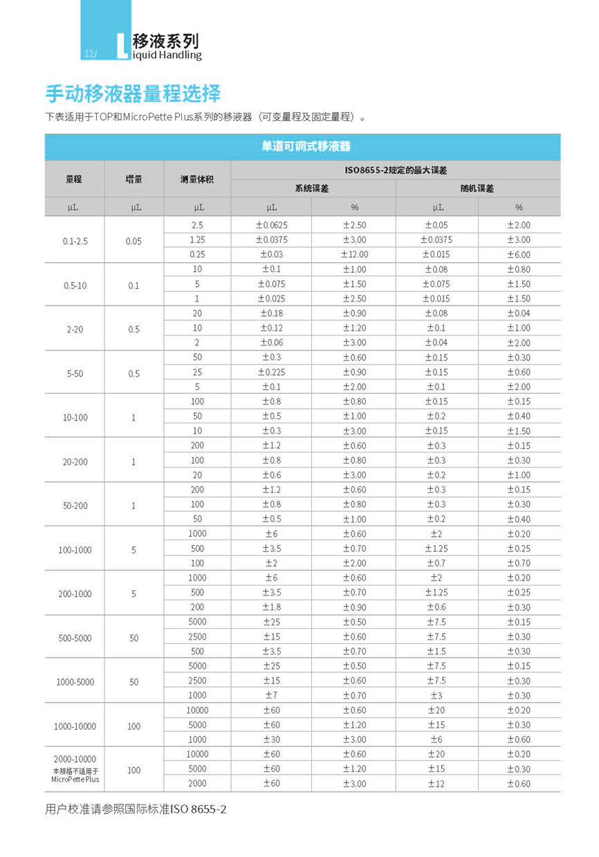 - 量程范圍廣,0.1μl至10ml