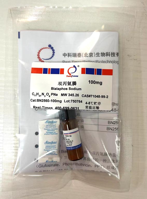 雙丙氨膦(Bialaphos)也稱為雙丙氨膦鈉鹽(Bialaphos Na)是從土壤吸水鏈霉菌(Streptomyces hygroscopicus)發(fā)酵液中分離提純的一種三肽天然產(chǎn)物,由兩個丙氨酸殘基和谷氨酸類似物草銨膦(Glufosinate,Phosphinothricin,PPT)組成是一種非選擇性除草劑,對哺乳動物低毒,在土壤中半衰期較短(20-30天)。雙丙氨膦本身無除草活性,在植物體內(nèi)降解成具有除草活性的草銨膦和丙氨酸。