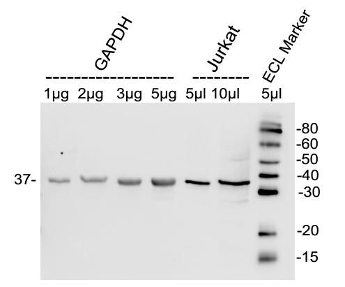 一抗:兔GAPDH多抗(Cat: RGA1040) 1:2000 過夜4℃孵育
