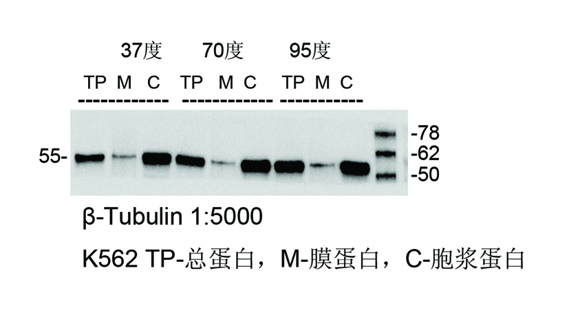 樣品:K562細(xì)胞,膜蛋白提取試劑盒提取膜蛋白(M)和胞漿蛋白(C),RIPA提取總蛋白(TP)