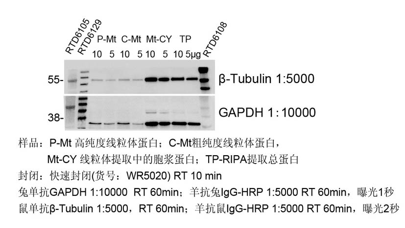 一抗:鼠單抗β-Tubulin 1:5000,常溫?fù)u床孵育60min