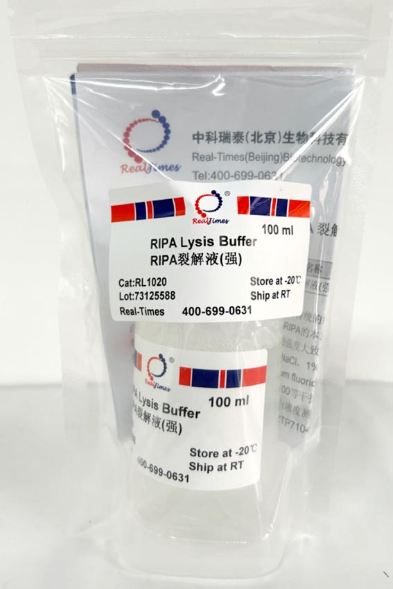 Lysis Buffer)是一種傳統(tǒng)的細(xì)胞組織快速裂解液。RIPA裂解液裂解得到的蛋白樣品可以用于常規(guī)的Western、IP等。RIPA的本意是Radio Immunoprecipitation Assay。RIPA裂解液的配方有很多種,根據(jù)其裂解液的強(qiáng)度大致可以分為強(qiáng)、中、弱三類。RIPA裂解液(強(qiáng))的主要成分為50 mM Tris (pH 7.4),150 mM NaCl,1% Triton