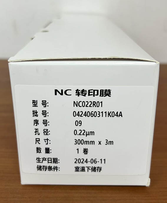 硝酸纖維素膜(Nitrocellulose membrane,NC膜)是蛋白印跡最廣泛使用的轉移介質,對蛋白有很強的結合能力,而且適用于各種顯色方法。具有使用方便,易保存(結合有蛋白的NC膜4℃可保存幾年)等優(yōu)點。NC膜分為0.45μm,0.2μm,0.1μm三種。分子量小于20kD蛋白使用0.2μm,分子量小于7kD蛋白使用0.1μm。本公司產品為孔徑0.22μm NC膜。