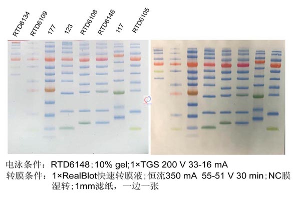 轉(zhuǎn)移效率高:快速轉(zhuǎn)膜液對(duì)分子量跨度較大的蛋白也有很好的轉(zhuǎn)移效率,有效解決了大小蛋白不能在同一張膜上同時(shí)轉(zhuǎn)移的問題。