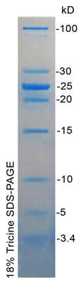本產(chǎn)品包含5種多肽和3種低分子量蛋白質(zhì)組成,分子量范圍為3.4kD-100kD。可以用來判斷 SDS-PAGE上多肽和小蛋白的分子量。