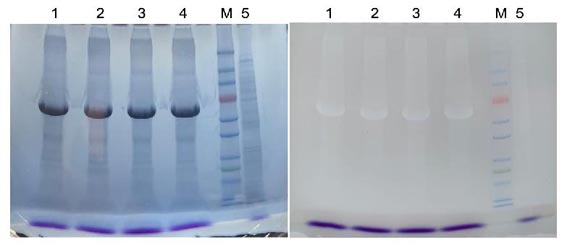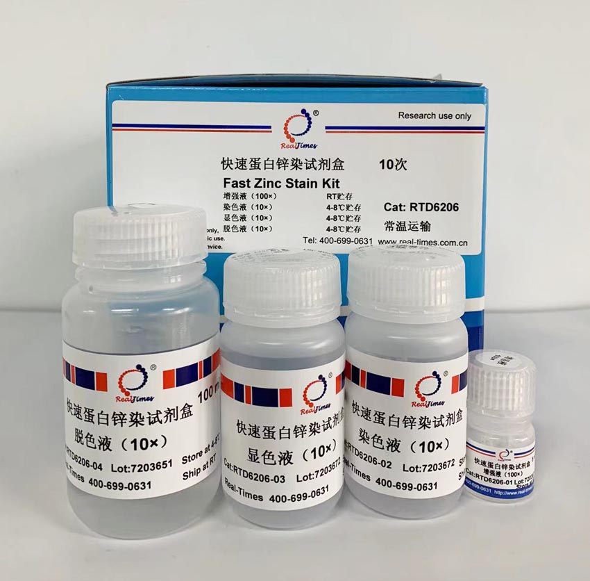 本試劑采用以鋅離子為基礎(chǔ)的負(fù)染色方法,用于SDS-PAGE或Native-PAGE電泳凝膠染色,不需要使用含有刺激性的甲醛和冰醋酸,實(shí)驗(yàn)方便快速,可以在30 min左右完成,最低能夠檢測出2 ng的蛋白條帶,該方法不對蛋白質(zhì)產(chǎn)生修飾作用,而且經(jīng)過脫色液處理后,可以用于電洗脫或采用PAGE膠蛋白微量回收試劑盒(貨號:RTD8108)進(jìn)行膠回收,以便進(jìn)行質(zhì)譜和測序分析等,也可以用于其他染色方法(銀染或考染)對膠重新染色。
