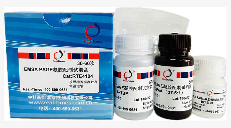 EMSA PAGE凝膠配制試劑盒(PAGE Gel Preparation Kit for PAGE)提供了配制EMSA PAGE凝膠所需的各種試劑,用戶只需自備制膠器具和蒸餾水,即可配制不同濃度的EMSA PAGE凝膠。凝膠遷移實(shí)驗(yàn)(也稱凝膠阻滯實(shí)驗(yàn)或電泳遷移率實(shí)驗(yàn))