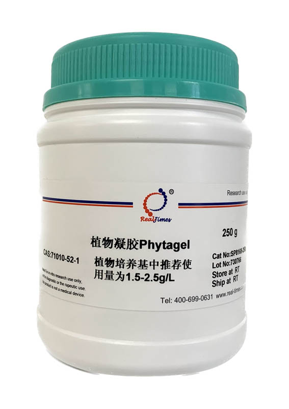 Phytagel又名Gellan gum,Gelrite。是一種瓊脂的替代物,是細(xì)菌(假單孢菌Pseudomonas elodea)經(jīng)過發(fā)酵生產(chǎn)的,含有葡萄糖醛酸、鼠李糖和葡萄糖等物質(zhì),具有無色、透亮和高韌性的特點(diǎn),是配制植物組織培養(yǎng)基和微生物培養(yǎng)基的主要成分。由于其克服了傳統(tǒng)瓊脂在植物組織培養(yǎng)中的固有缺陷為植物學(xué)研究帶來了一場新的革命,已經(jīng)成為了國際公認(rèn)的植物組培首選產(chǎn)品。